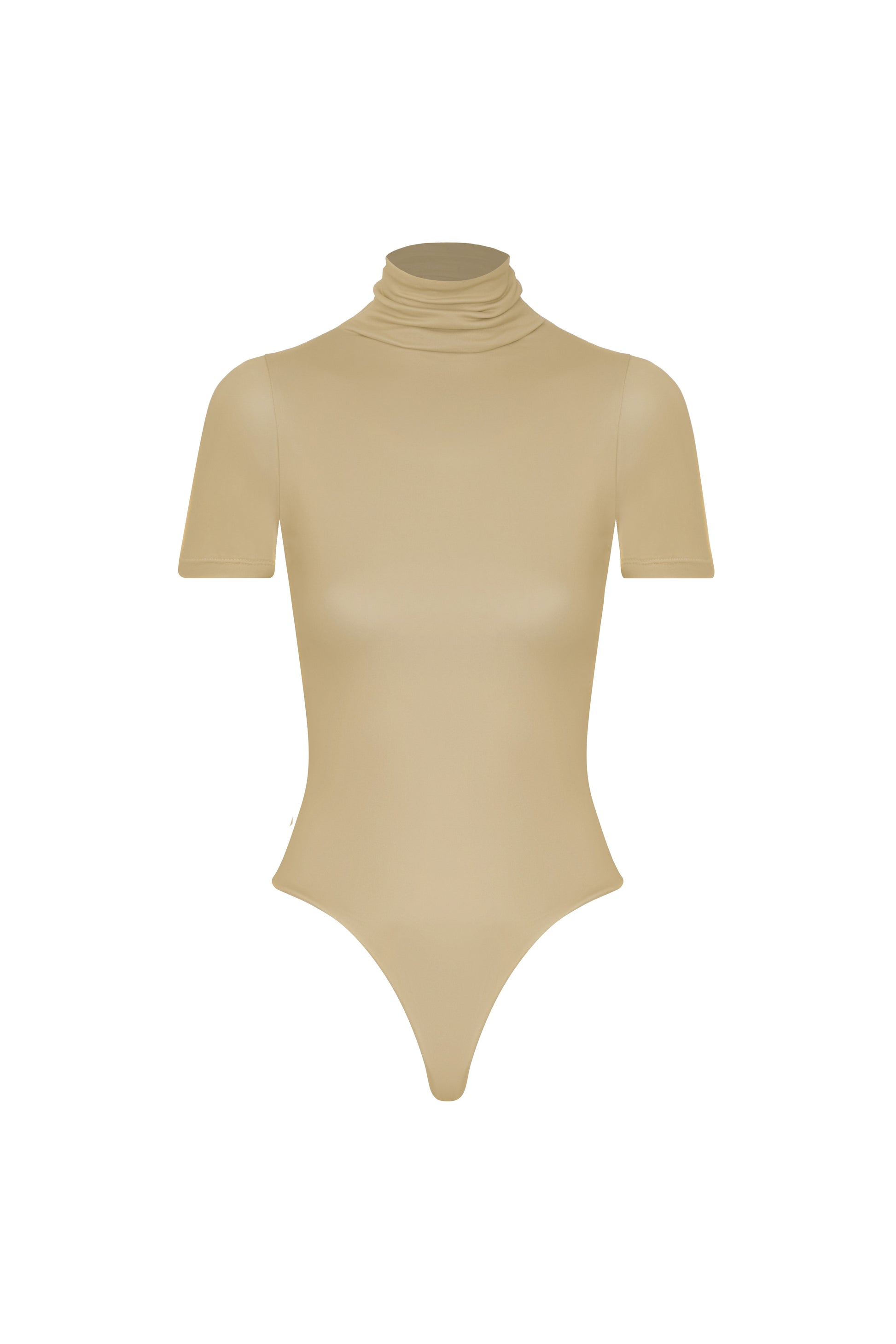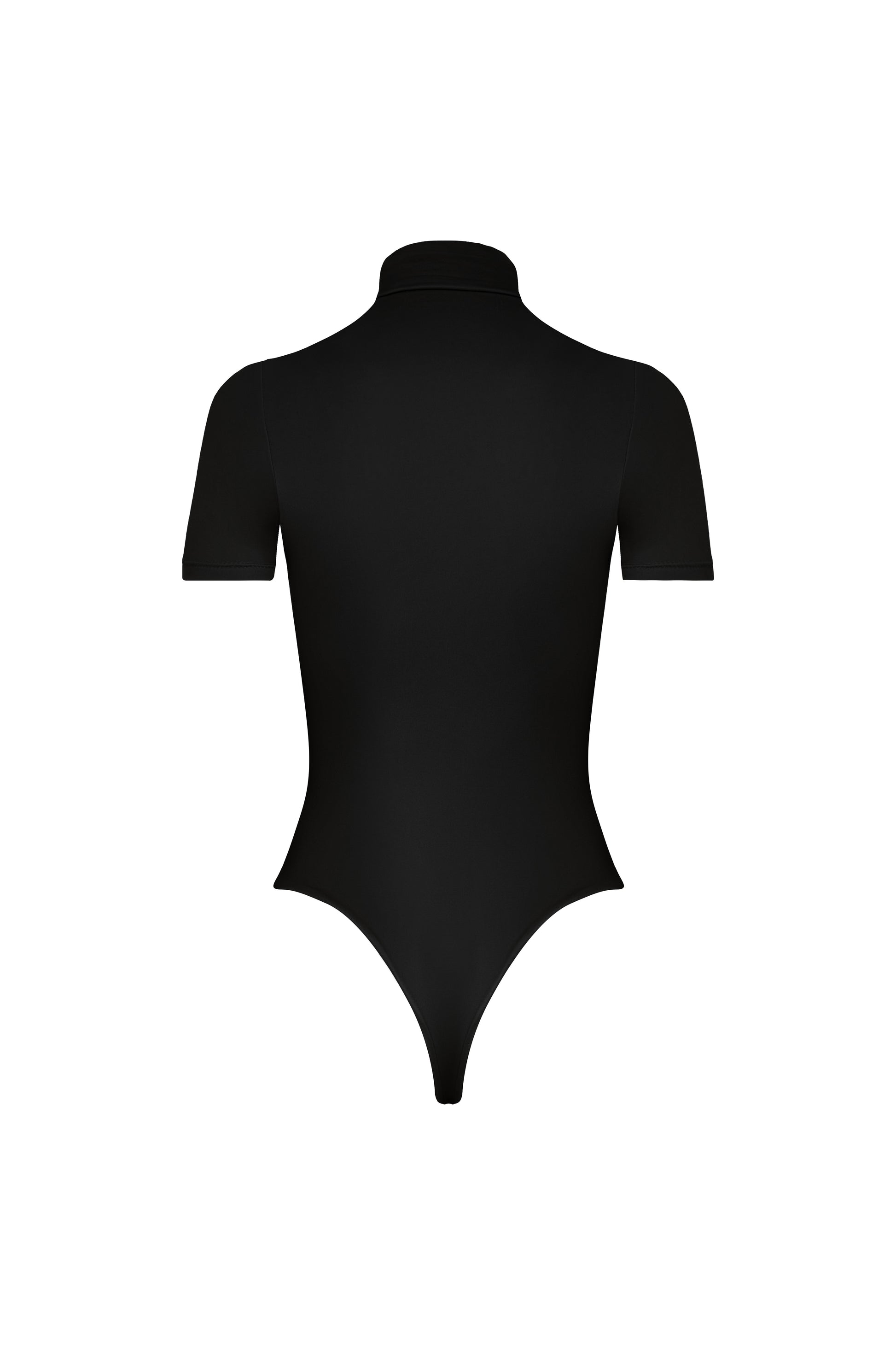 This short-sleeve turtleneck is designed as a versatile base layer with a clean, body-skimming cut. The neckline is softly gathered for a structured yet easy shape, while the fitted silhouette keeps the look sharp and minimal. Its simplicity makes it a staple piece, equally suited for layering or wearing on its own.
